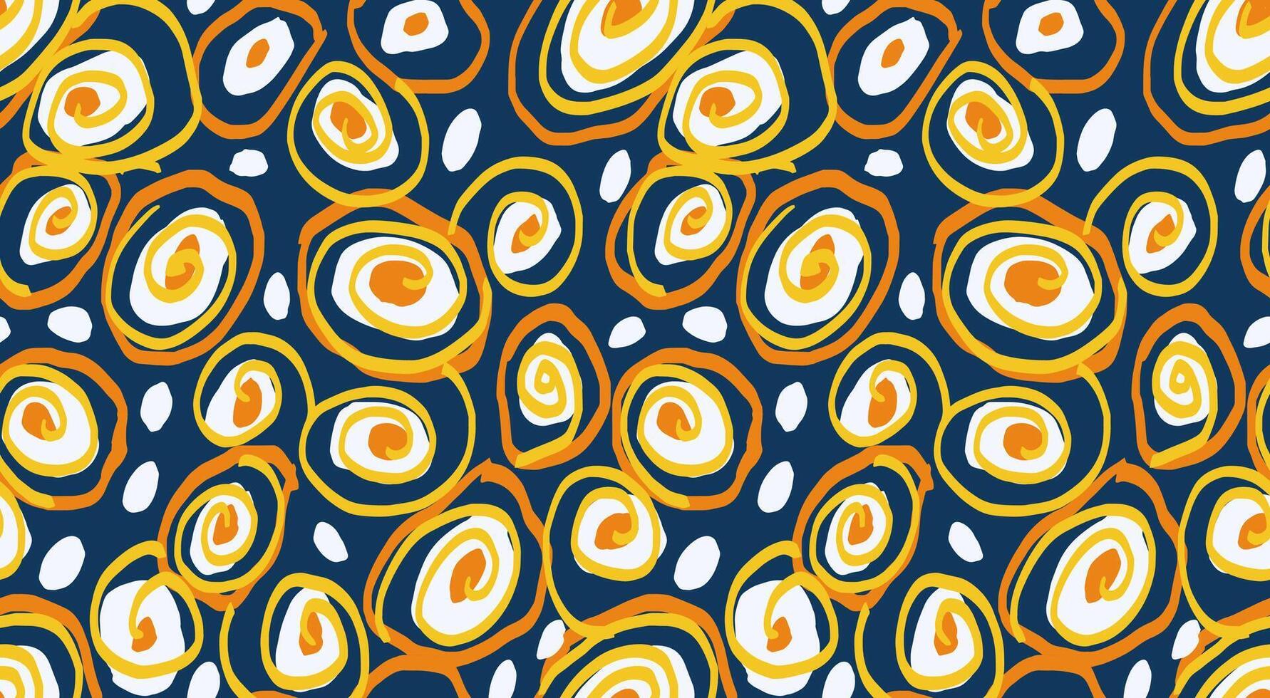 Abstract seamless pattern with yellow unique swirl organic shapes. hand drawn irregular shape circular. Contemporary background ornament for print vector