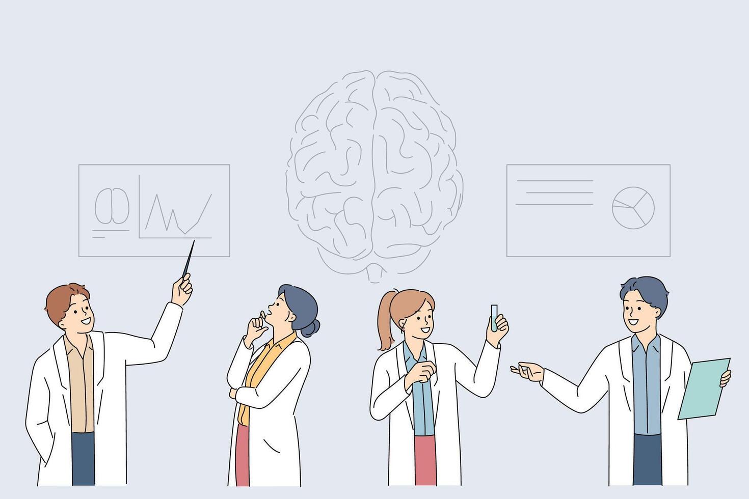 Group of neuroscientists is studying human brain trying to improve memory and intelligence Pro Vector