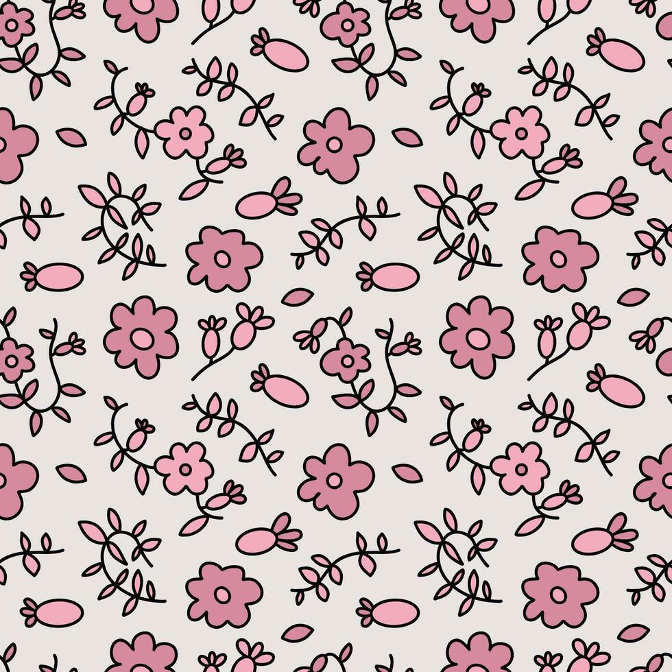 A pattern of small flowers and leaves in pastel tones. Seamless background with a bohemian pattern in the form of small flowers. Pro Vector