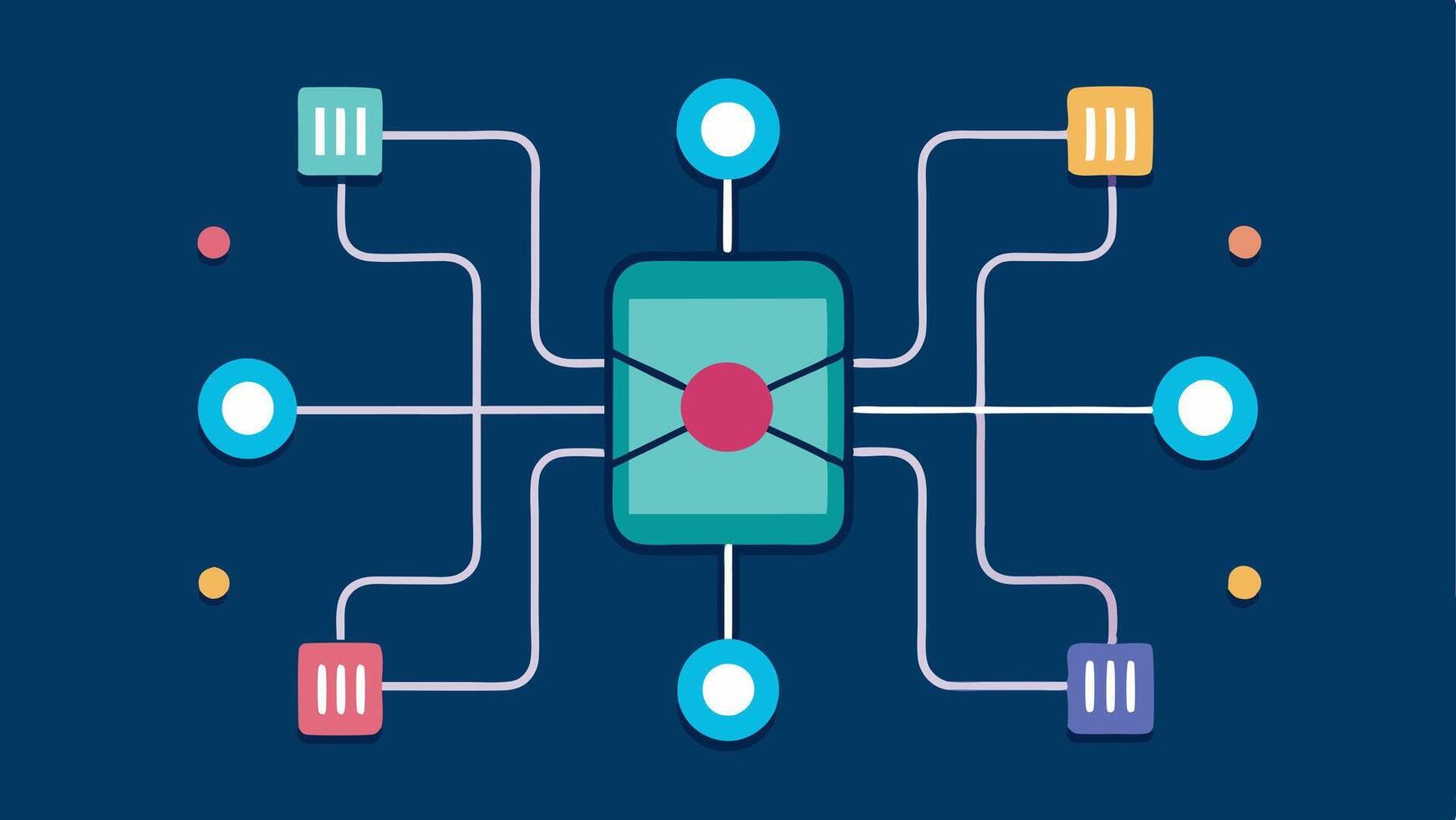 MultiChannel Design An illustration of a microfluidic chip with an intricate network of channels showcasing different paths and destinations for the fluid sample.. Pro Vector