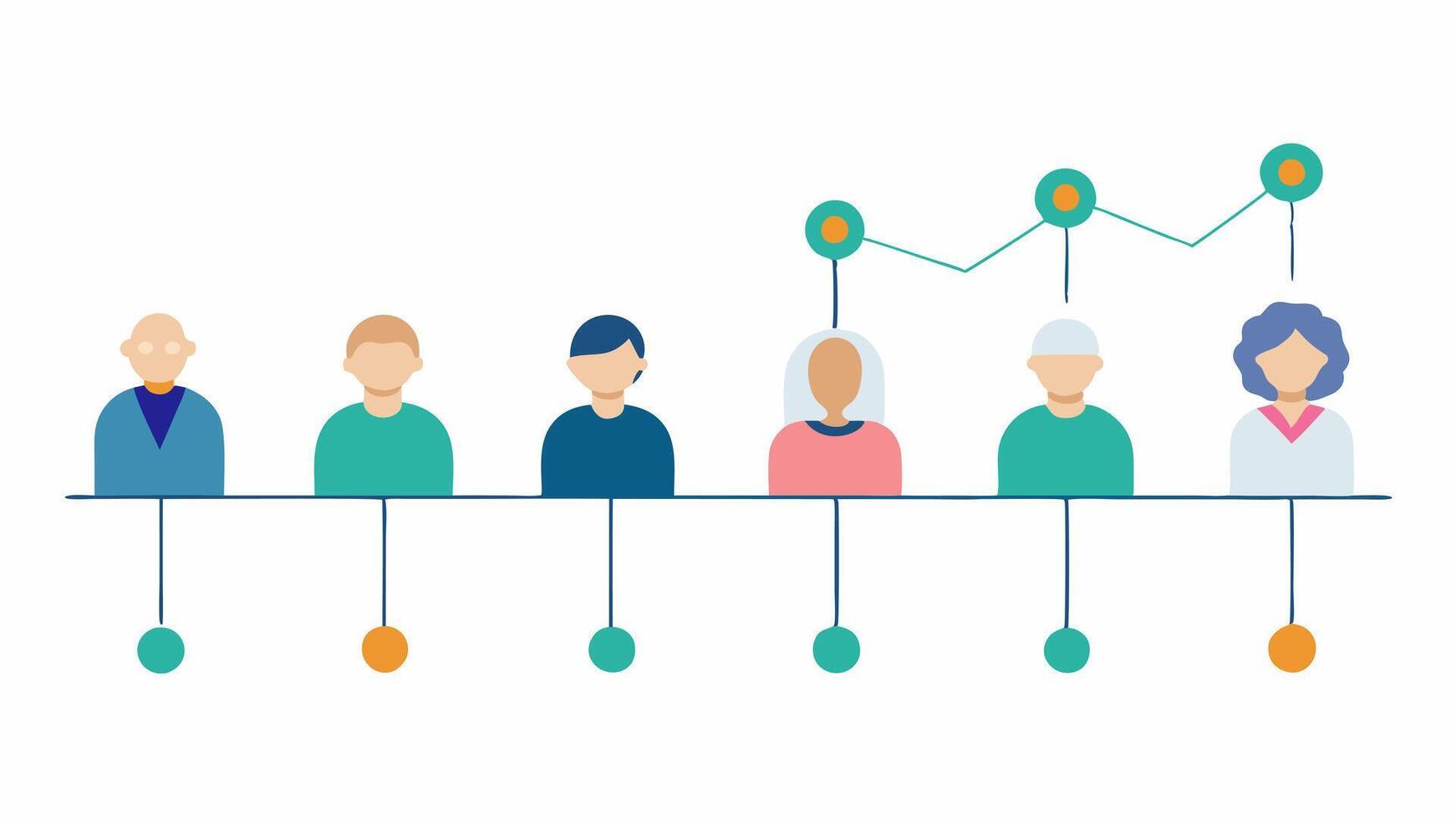 Longevity Timeline A timeline graph showing the impact of different biomarkers on health and longevity over the years with milestones indicated by stylized people at different. Pro Vector