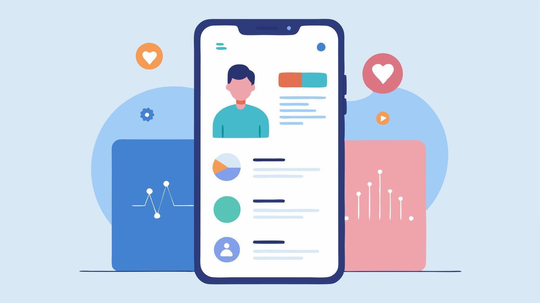 Mobile App Interface A smartphone screen showcasing a sleek app interface with charts reminders and personalized health tips illustrating user interaction with the health. Pro Vector