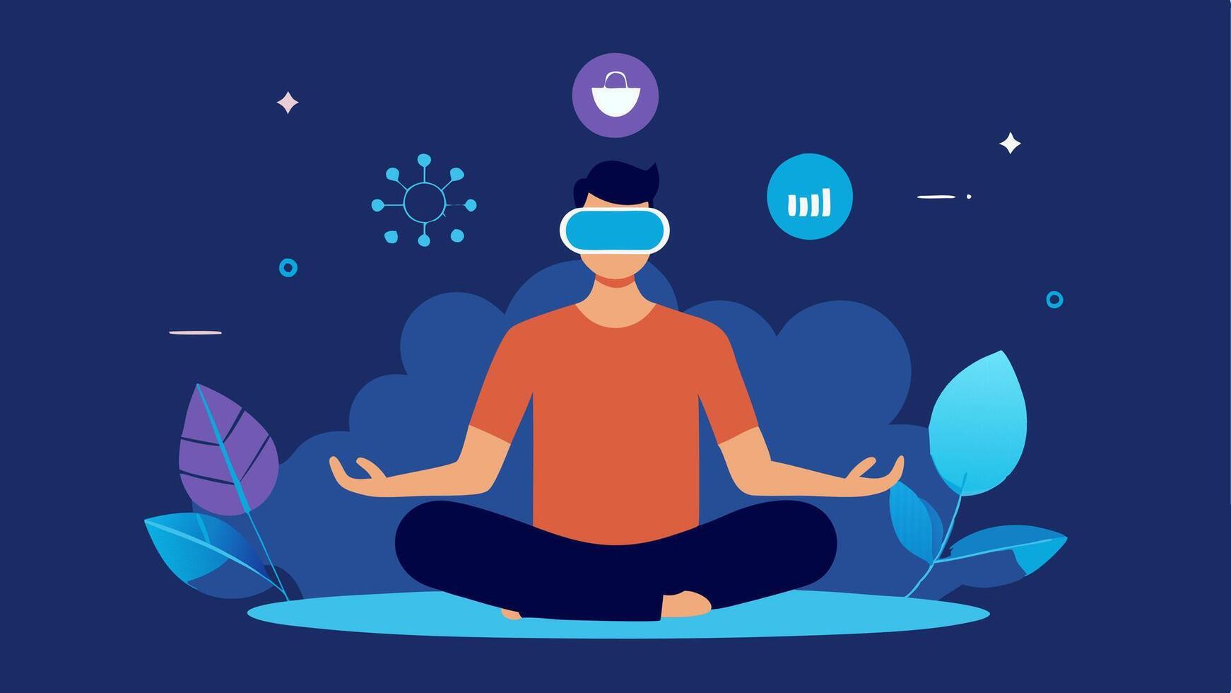 MindBody Connection A guided meditation session in a calming virtual setting where a the uses AR to visualize mental health strategies and relaxation techniques.. Pro Vector