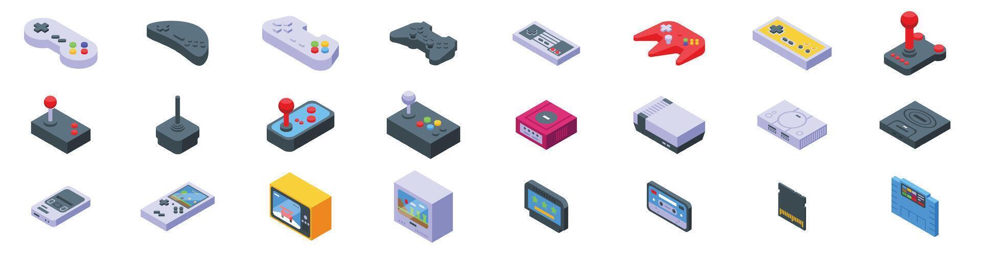 Retro gamepad icons set. Retro gaming consoles and controllers providing nostalgic entertainment Pro Vector
