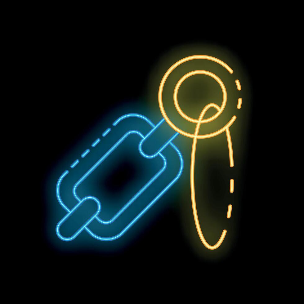 Neon chain link connecting to a circle on black background Pro Vector