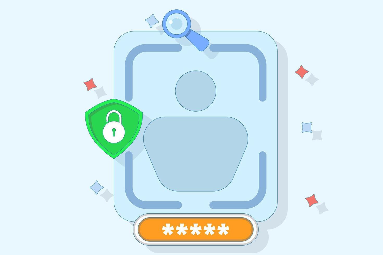 facial recognition technology concept. identification and authentication system using face. biometrics and security. illustration of user scanning their face to gain access. flat illustration. Pro Vector