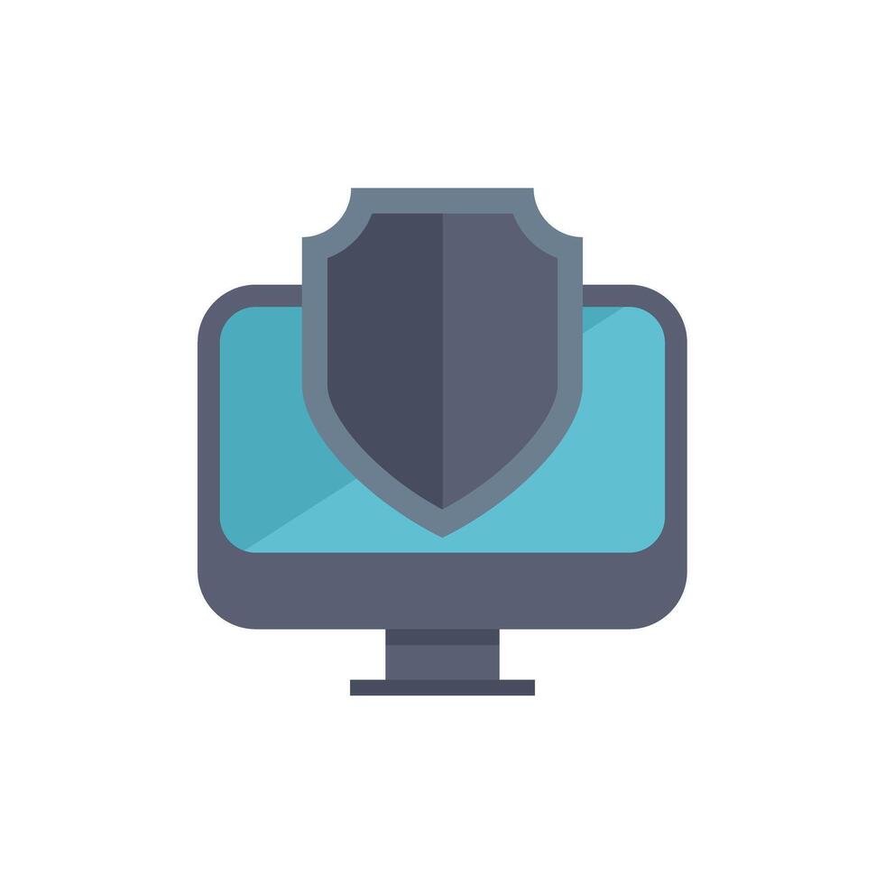 Modern online security concept with a shield covering a desktop computer, symbolizing digital protection and data safety Pro Vector