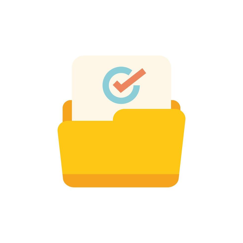 Yellow computer folder storing document with validation mark icon Pro Vector