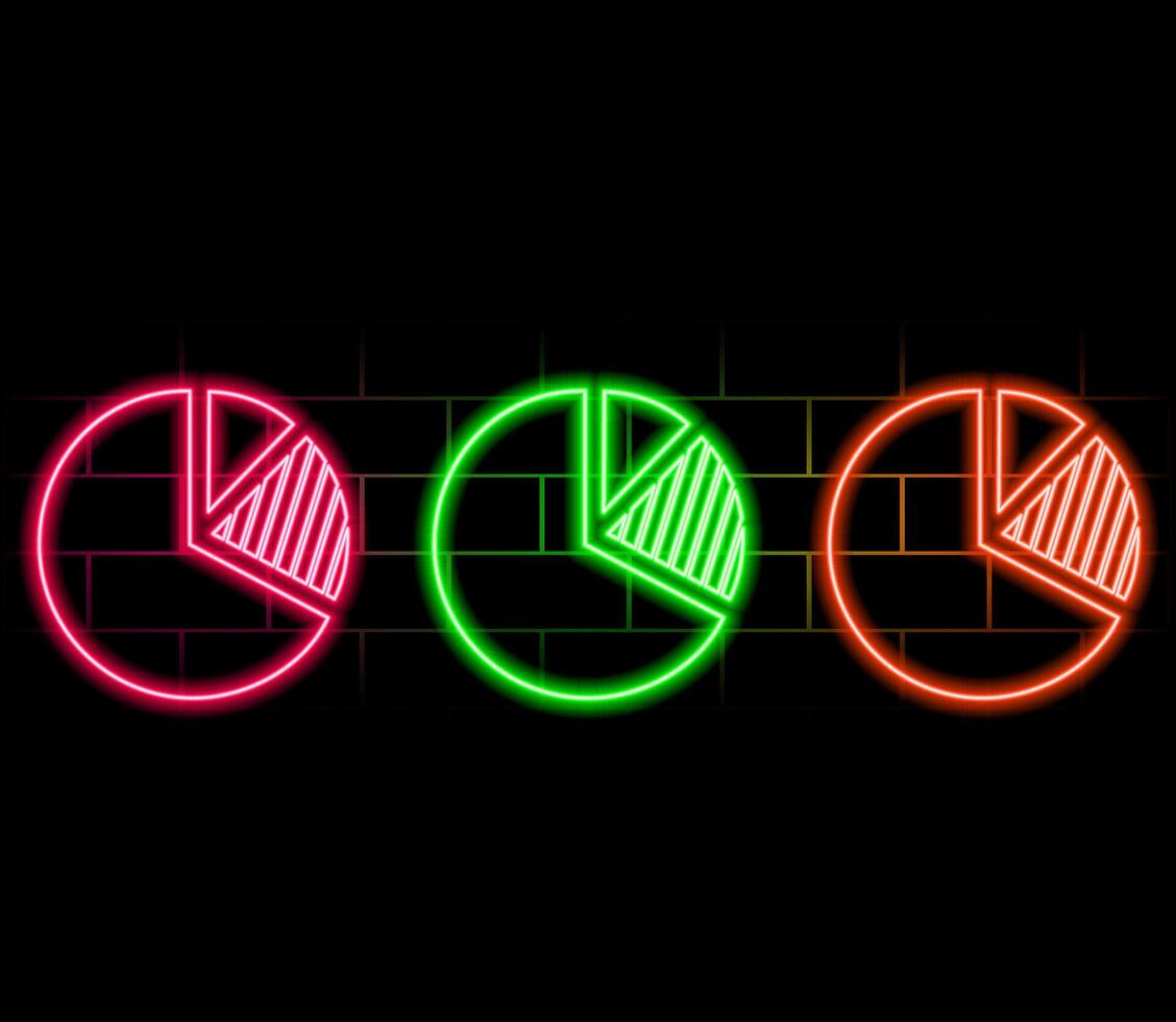 3d rendering wireframe digital techno neon glowing symbol of pie chart with slice with shining dots on black background with blured reflection Pro Vector