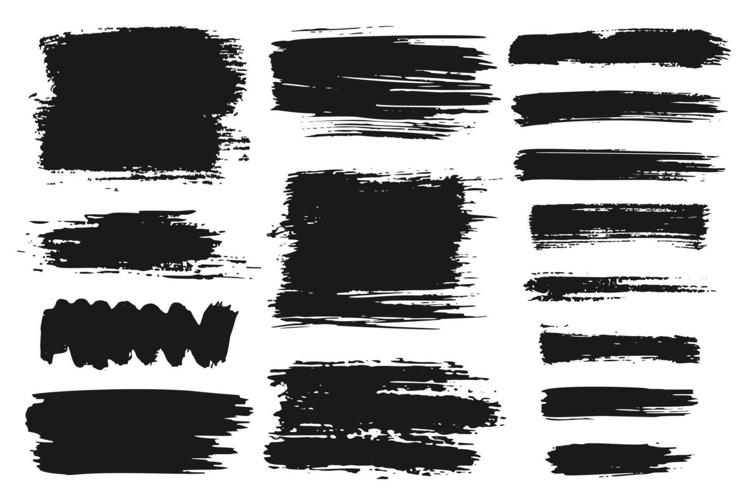 Hand drawn collection of abstract ink spots, brush strokes, lines and paint blobs. Grunge set of graphic illustrations for banner backdrop template. elements isolated on white background. Pro Vector