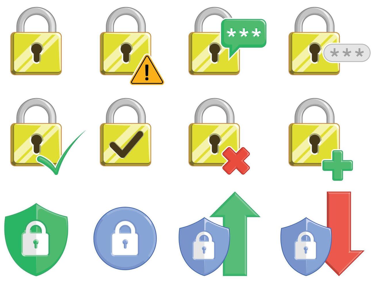 Lock Security Padlock Encryption Protection Set Pro Vector