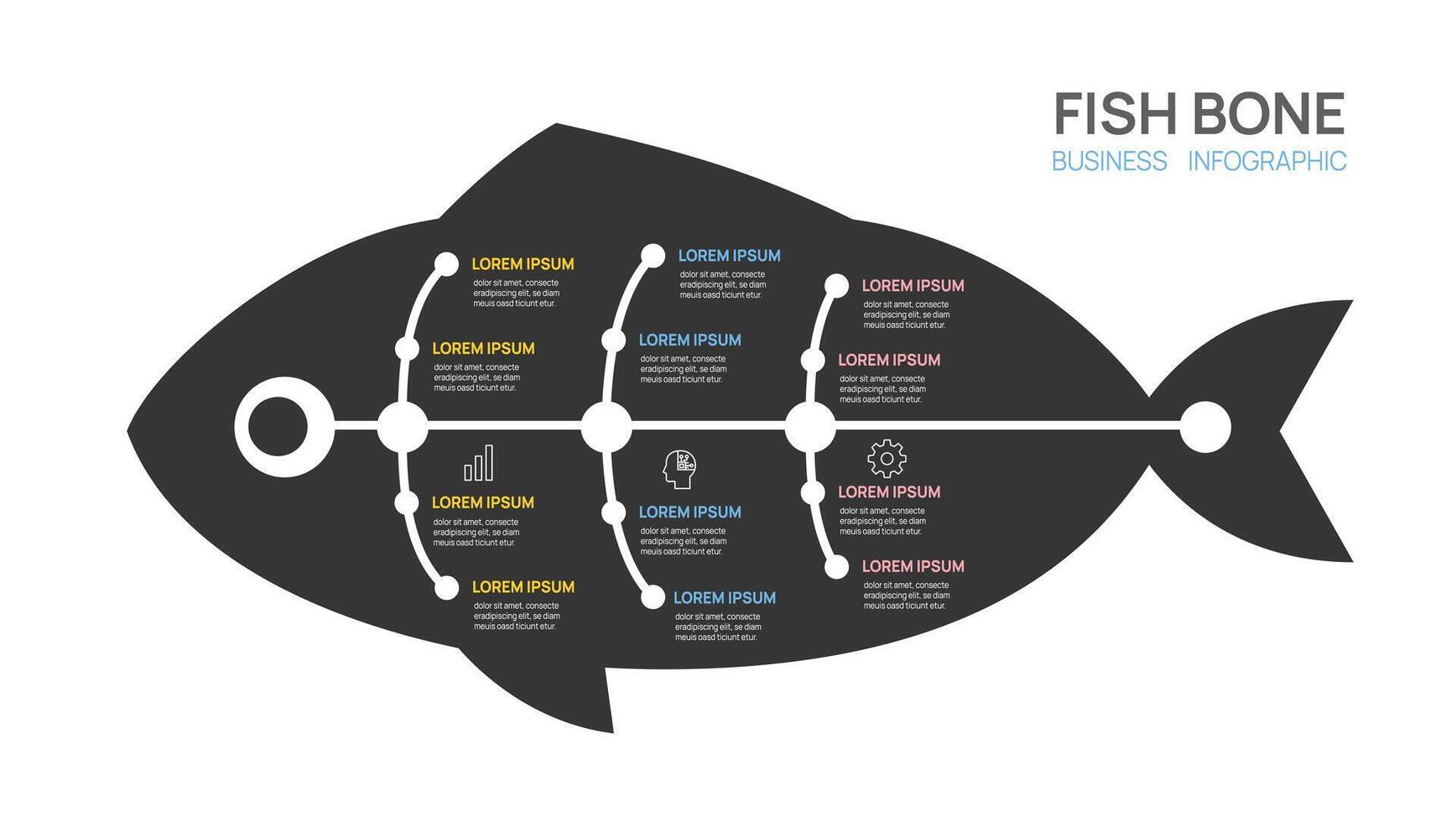 Infographic fish bone diagram template for business. 3 steps digital marketing data, presentation illustration. Pro Vector