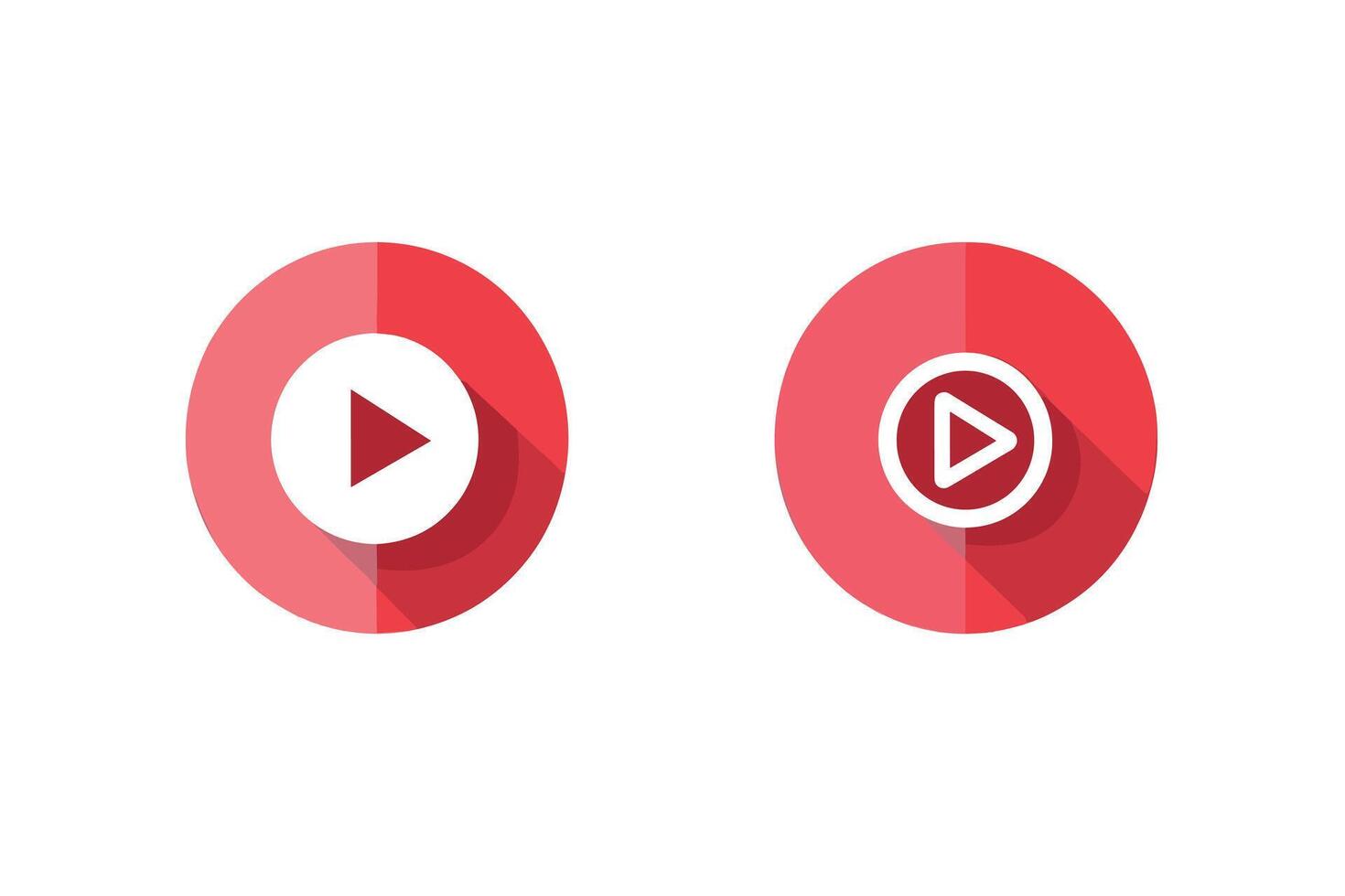 Red play button icons with long shadows on a white background. Free Vector