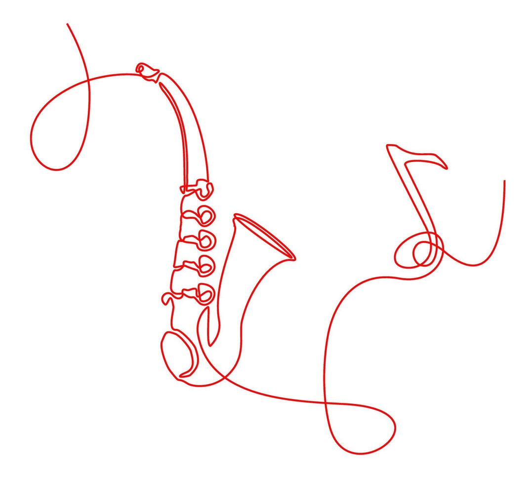 Continuous line art of Saxophone. Musical instruments continuous one line illustration. Wind music instruments concept. One line drawing abstract saxophone Pro Vector