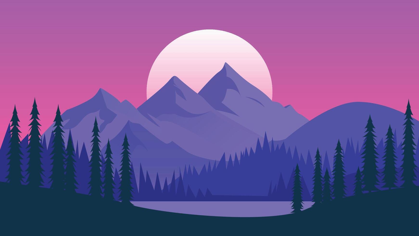 Nature View of Mountain with Pine Tree in the Forest Pro Vector