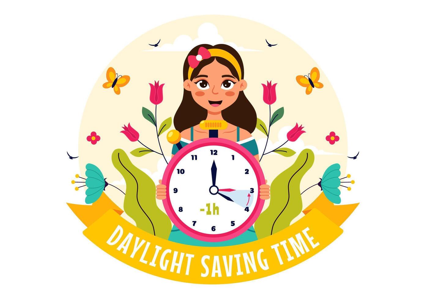 Seasonal Time Change with Alarm Clock and Calendar in a Summer to Fall Transition Pro Vector