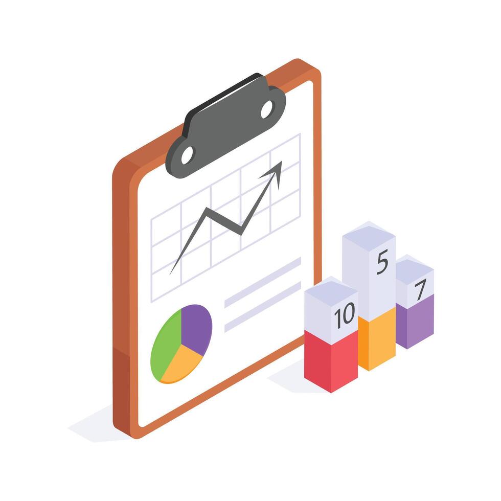 A clipboard displaying a report with bar graphs, symbolizing organized business data Pro Vector