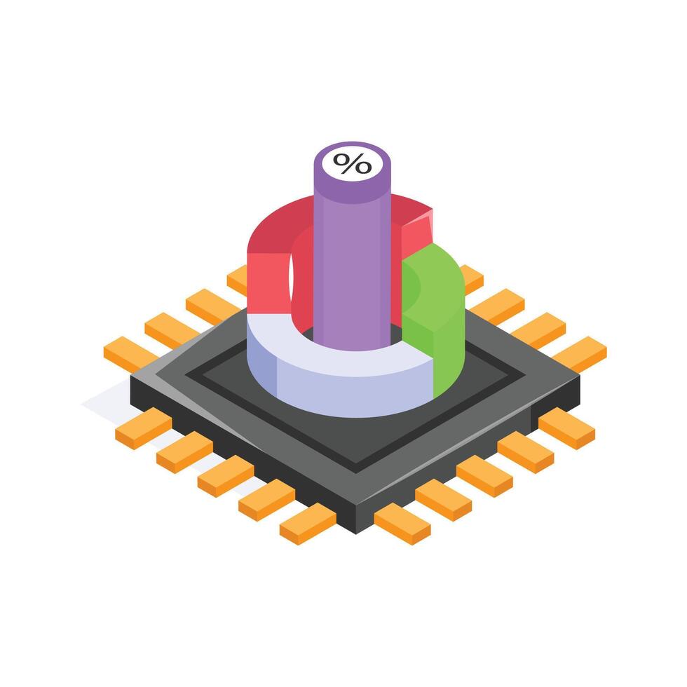 A microchip with graphs illustrating data processing and analysis Pro Vector