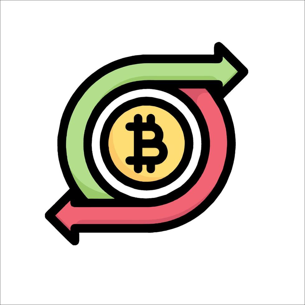 Bitcoin icon with arrows pointing up and down Free Vector