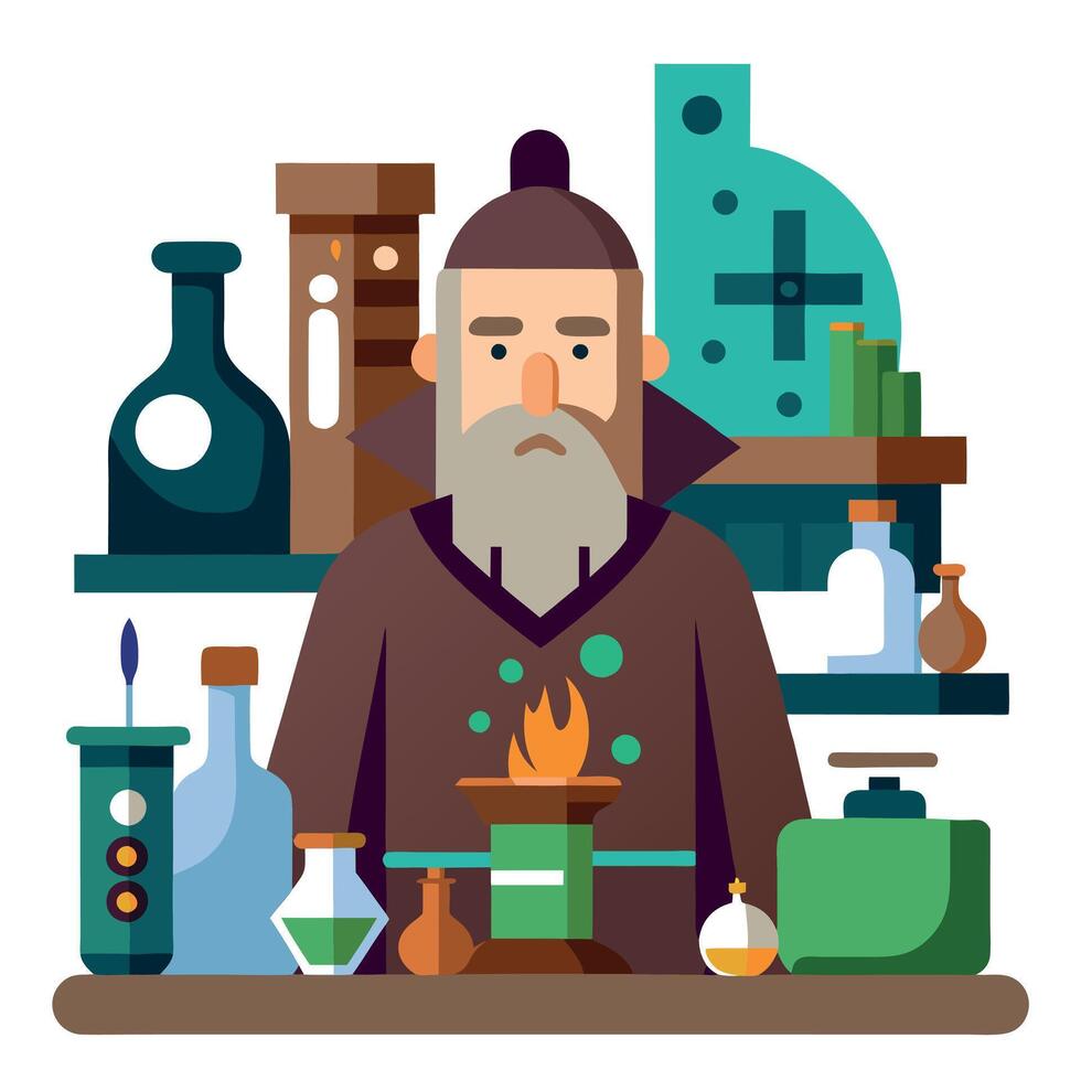 An illustration of a scientist with a beard and a lab coat Pro Vector