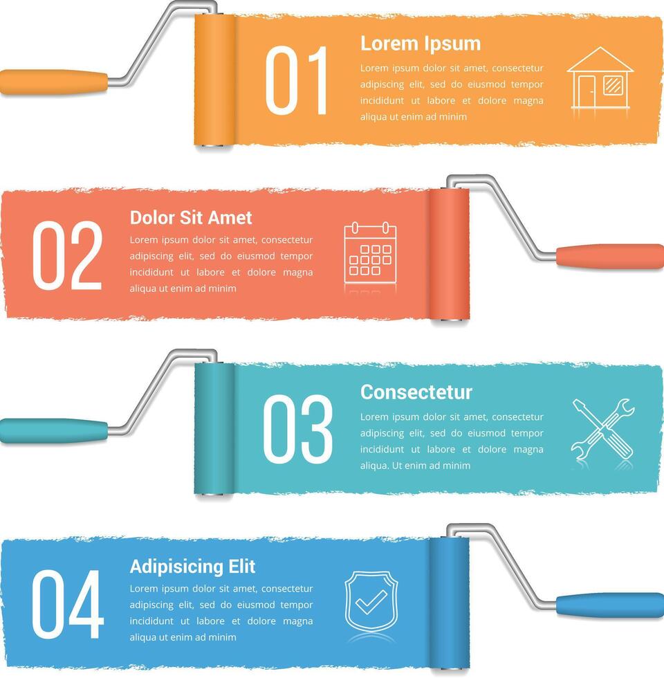 Paintrollers with numbers, icons and text, infographic template Pro Vector