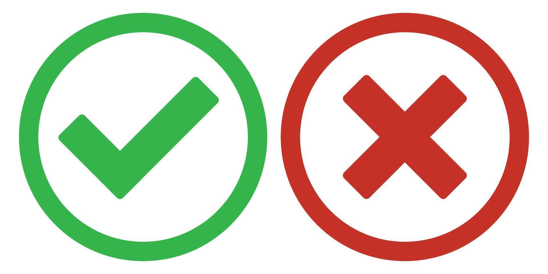 Tick and cross signs. Green tick OK and red X cross. YES and NO. False and true, right and wrong. Correct and incorrect, accept and reject. Digital content Pro Vector