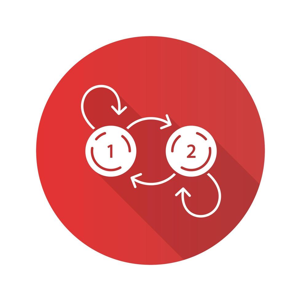 State diagram flat design long shadow glyph icon. System behavior. Object two states in response to external stimuli. Data processing. Information technology. Vector silhouette illustration Pro Vector