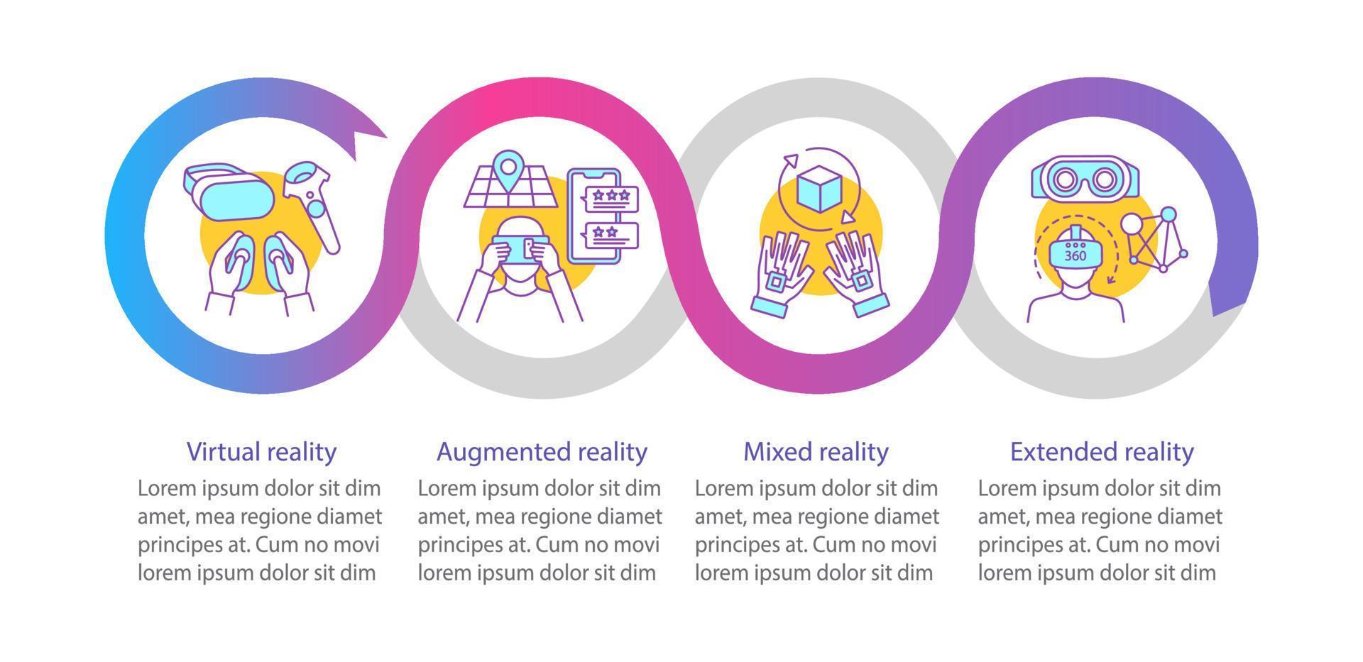 Extended reality vector infographic template. Virtual, mixed, augmented realities. Data visualization with four steps and option. Process timeline chart. Workflow layout with icons Pro Vector and Pro SVG
