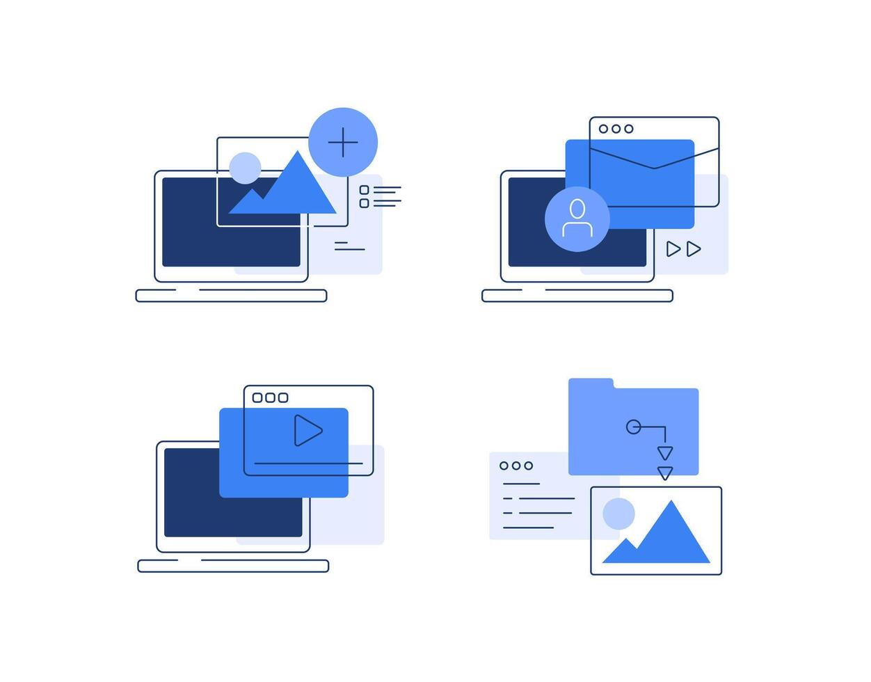 files and PC,Media data,Set of simple flat illustrations Free Vector