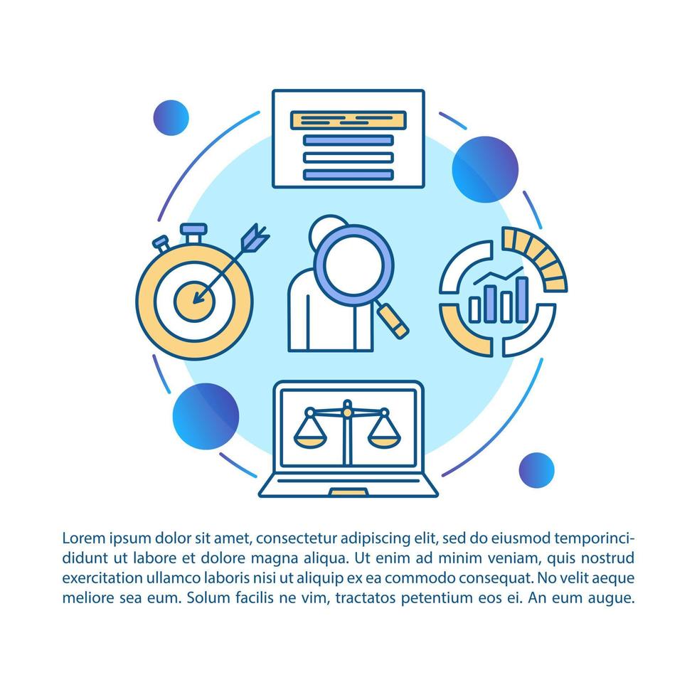 Skills evaluation article page vector template. Brochure, magazine, booklet design element with linear icons. Employment, recruiting print design. Concept illustrations with text space Pro Vector
