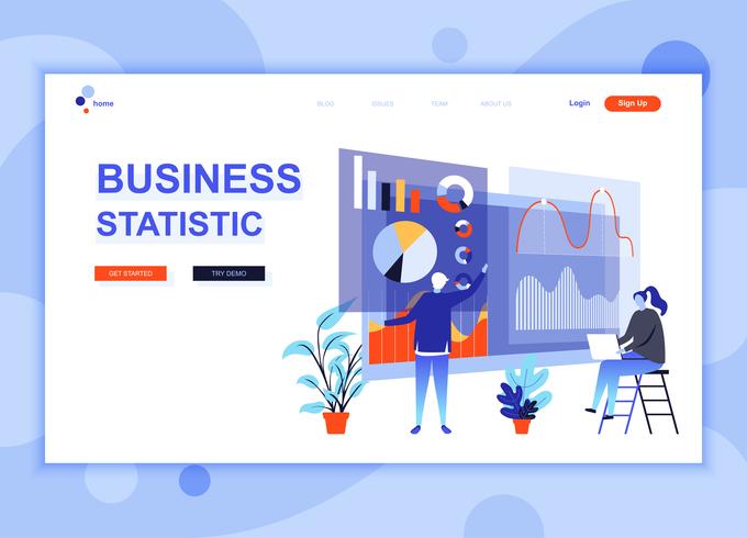 Modern flat web page design template concept of Business Statistic decorated people character for website and mobile website development. Flat landing page template. Vector illustration. Pro Vector