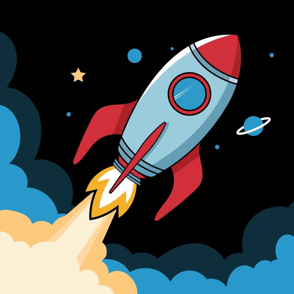 Rocket Spaceship Launch With Rocket Background Free Vector