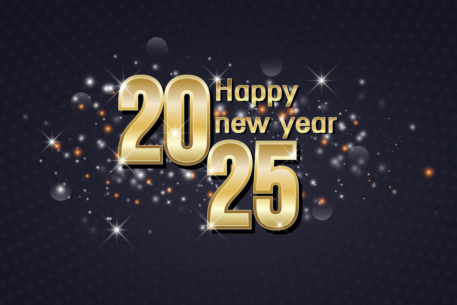 Elegant Happy New Year 2025 greeting with gold text and sparkling bokeh lights vector