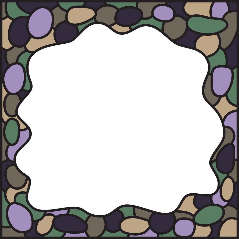 Frame template for cards, invitations, banners. You can place any text here. Invitation card with abstract mosaic pattern, . Wavy lines. Circle shapes. Empty space for picture. Frame or border. Pro Vector