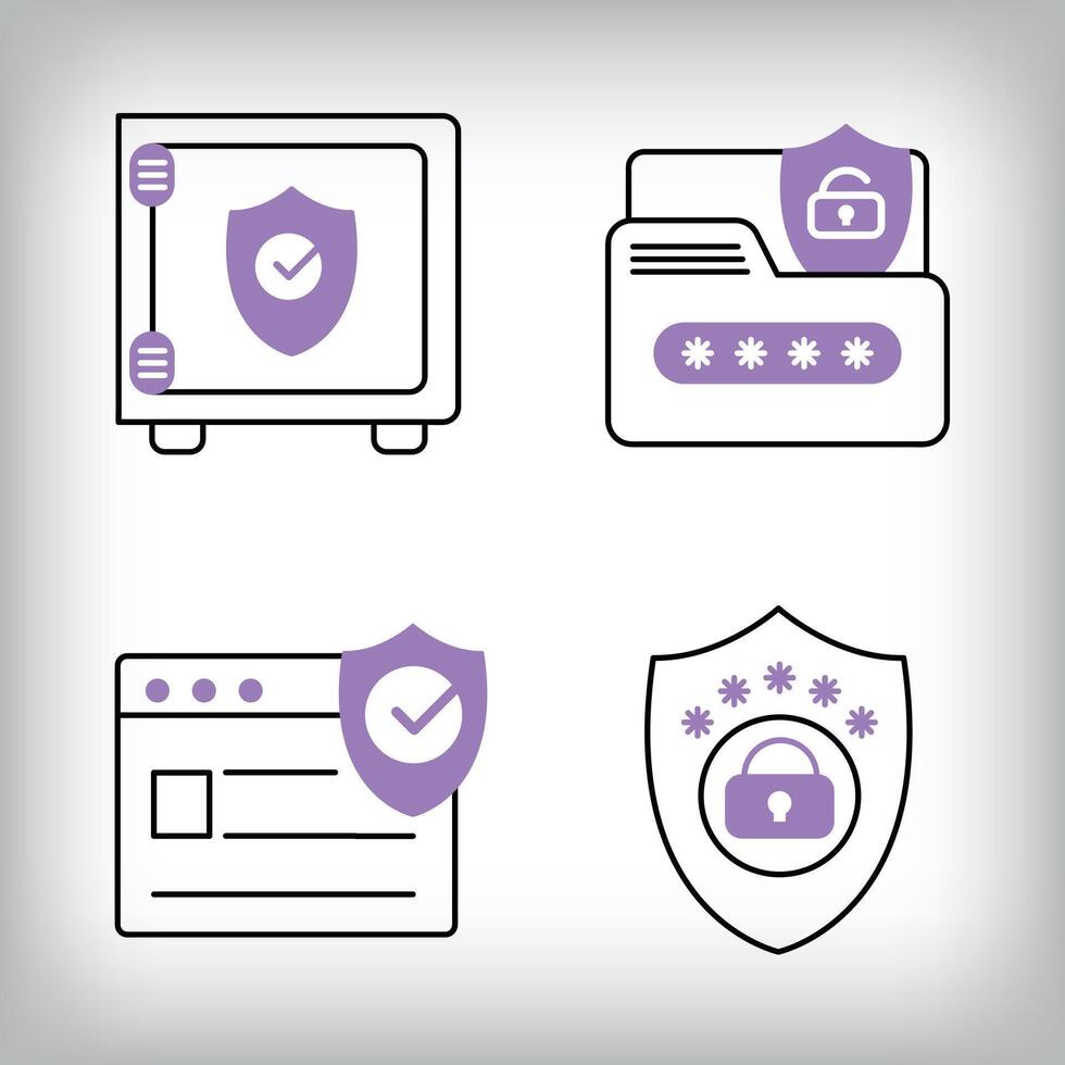 Unique set of 4 safe, data protection and web page security icons. Set of data security and personal access technologies. Pro Vector