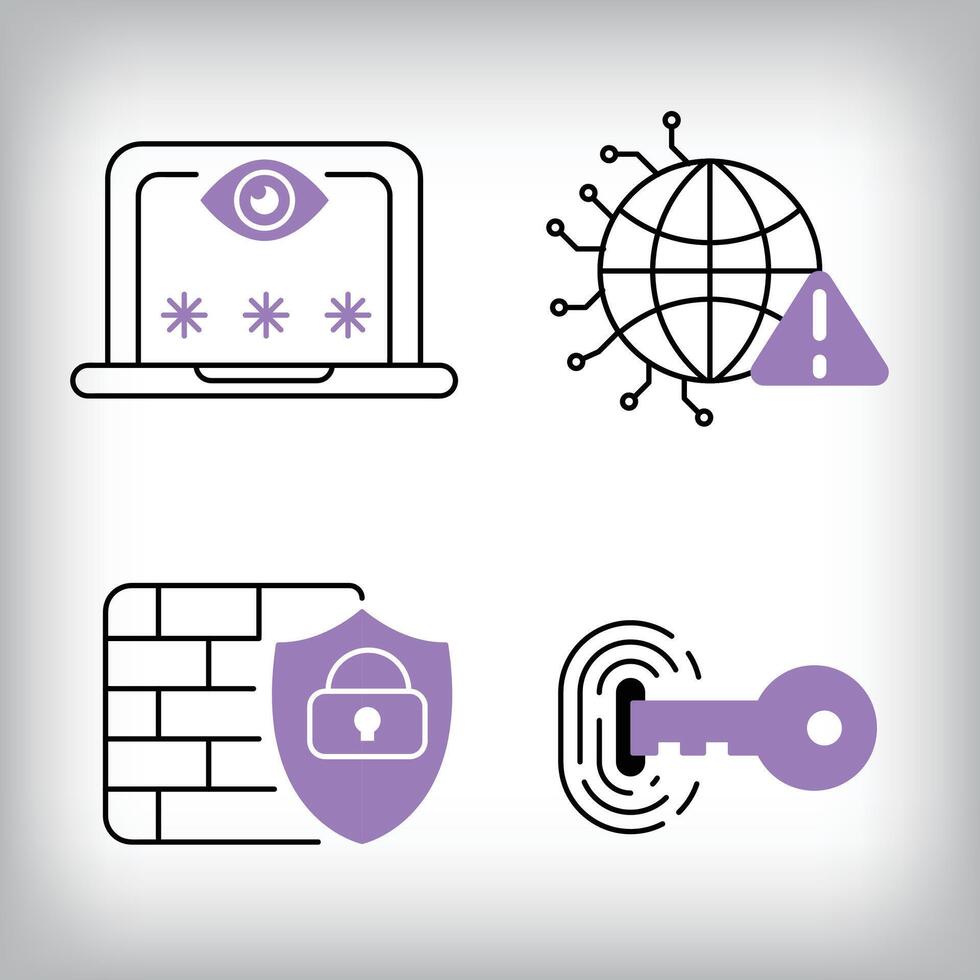 Unique 4-way firewall, fingerprint login and connection icon set. Set of data security and personal access technologies. Pro Vector