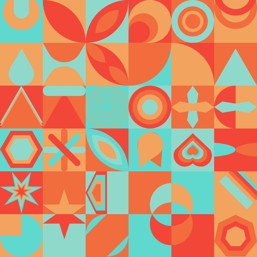 Geometric shapes in red, orange, and turquoise suitable for abstract backgrounds, graphic design projects, and modern art inspiration. vector