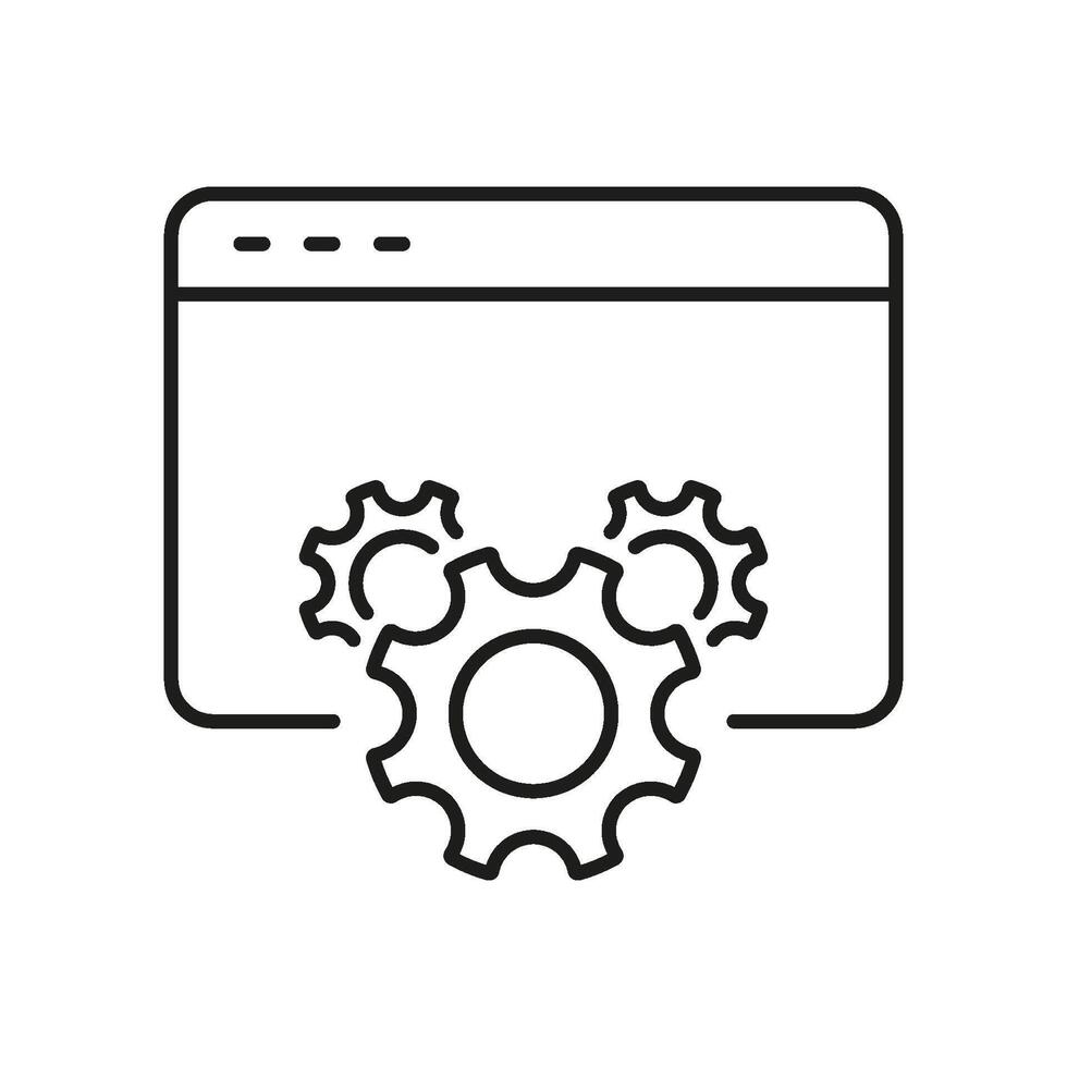 Web Browser with Gear for Online Configuration and Settings Line Icon. Internet Browser and Cog Sign for Website Maintenance and Support. Editable Stroke. Isolated Illustration Pro Vector