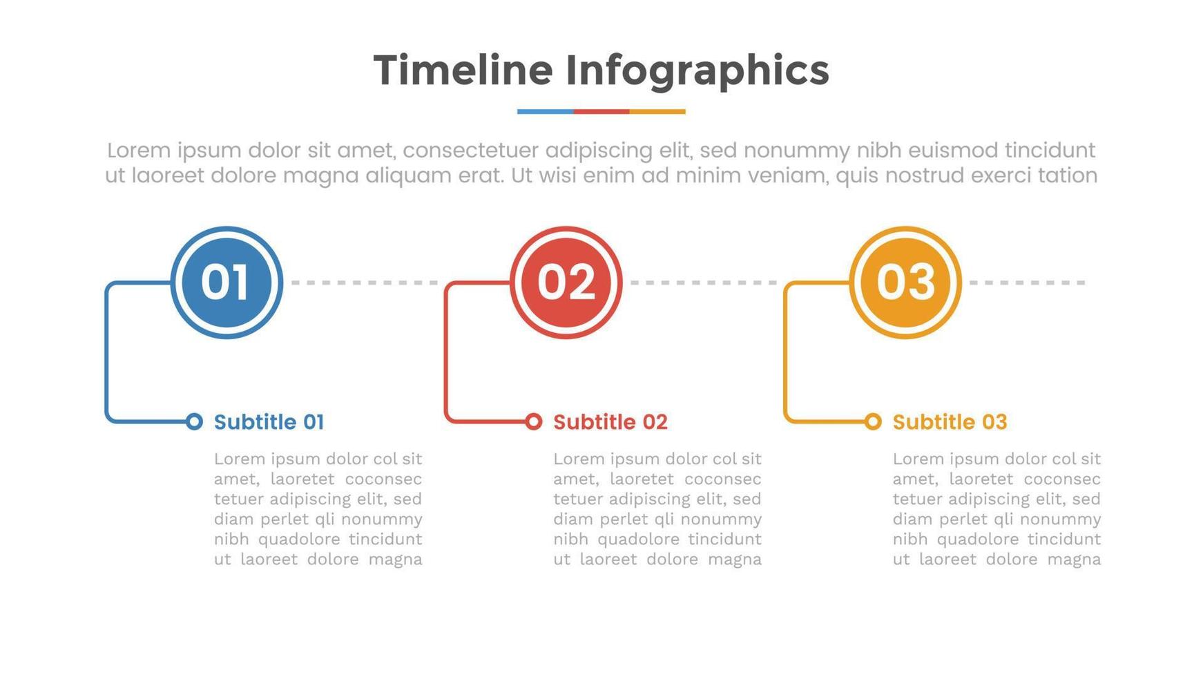 timeline infographic concept with 3 or three list step with circle shape and flat style Free Vector