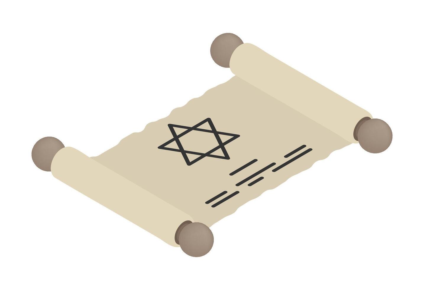 Isometric Jewish Torah scroll holy scripture. Three dimensional isolated on white background Pro Vector