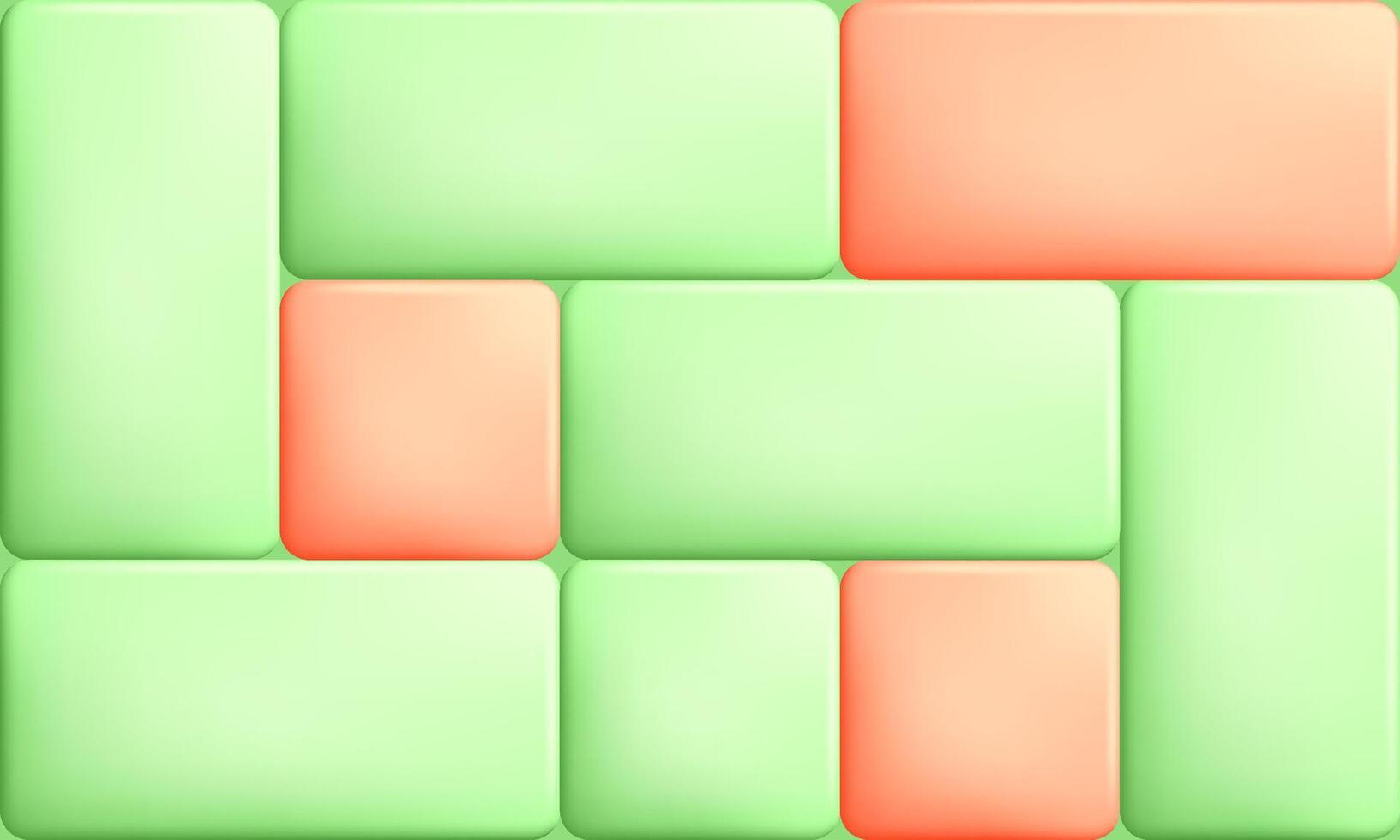 Mosaic green red plastic blocks with folded into a regular structure is made of large block. Copy space for design of web pages and interface. 3D background Pro Vector