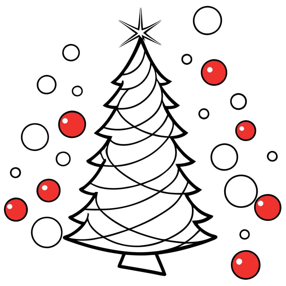 Christmas tree and red christmas balls on abstract defocus background with bokeh. Pro Vector