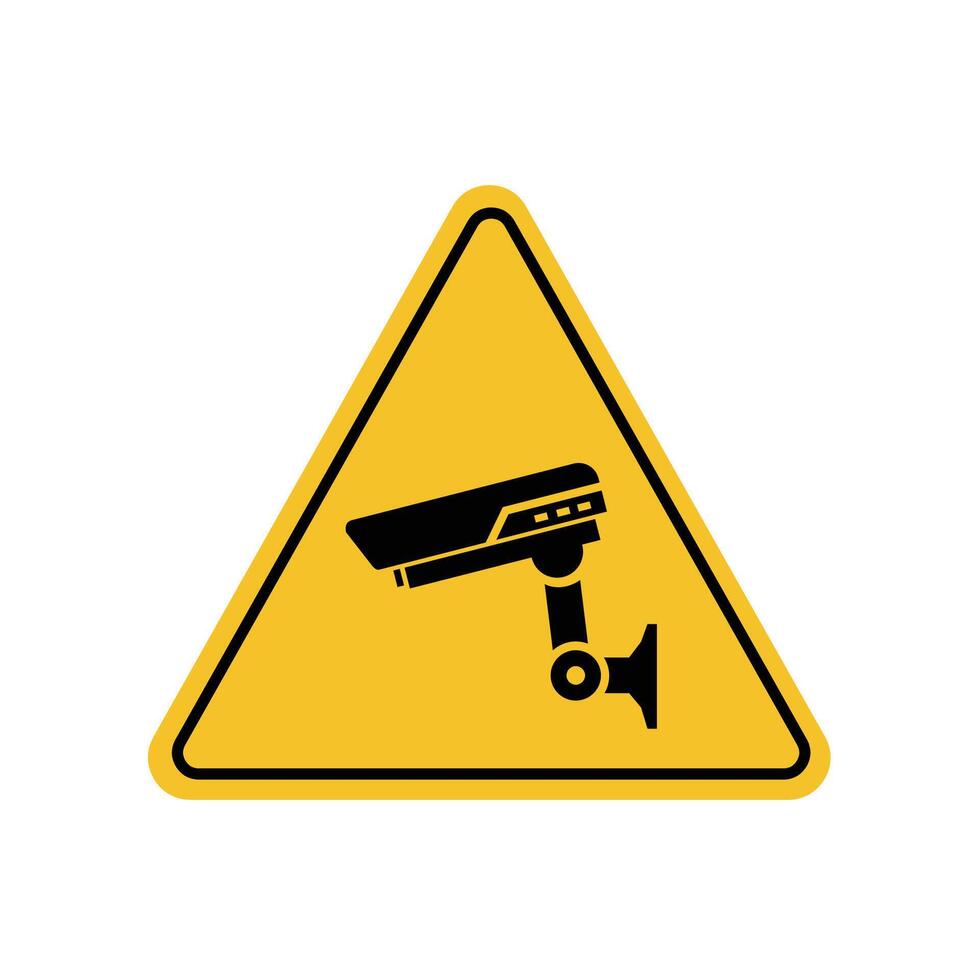 Super vigilant criminal surveillance camera is operating with yellow triangle board. Suitable for posters and web icons Pro Vector