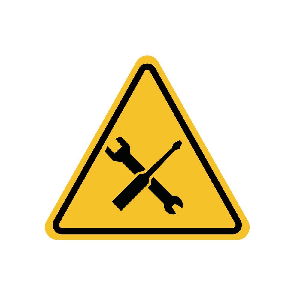 under construction in a building, a wrench and a screwdriver crossed on a yellow triangle sign. Suitable for posters and web icons Pro Vector