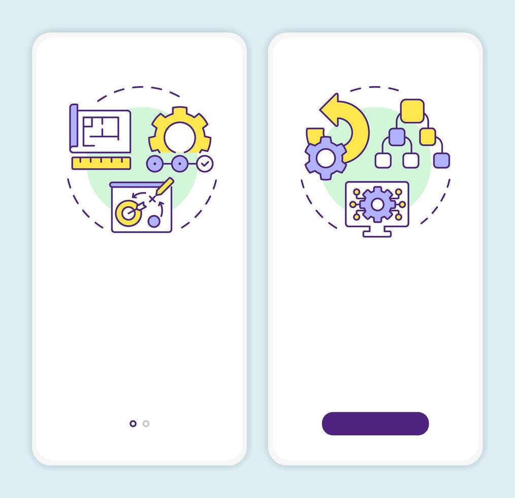 Forward vs reverse engineering onboarding mobile app screen. Walkthrough 2 steps editable graphic instructions with linear concepts. UI, UX, GUI template Pro Vector