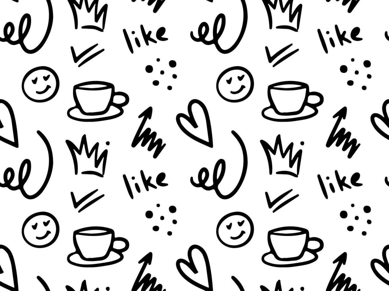 Doodle cute elements, line, heart, arrow. Seamless pattern. Hand drawn pen or pencil signs. Simple sketch line style emphasis, attention, pattern elements. background Pro Vector