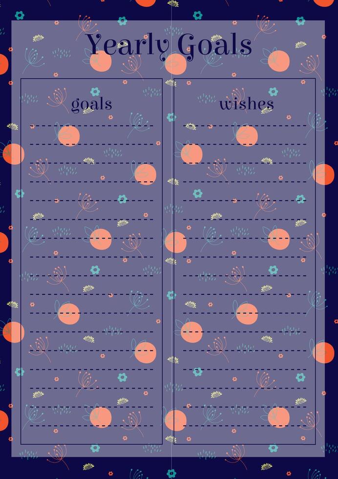 List of New Year Goals template. Concept of personal scheduling template. Paper sheet Pro Vector