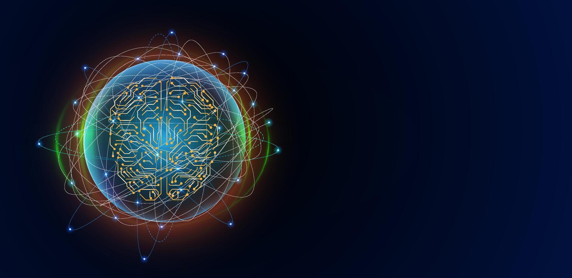 Artificial intelligence brain concept. Head robot AI with circuit board hi tech quantum technology. editable Pro Vector