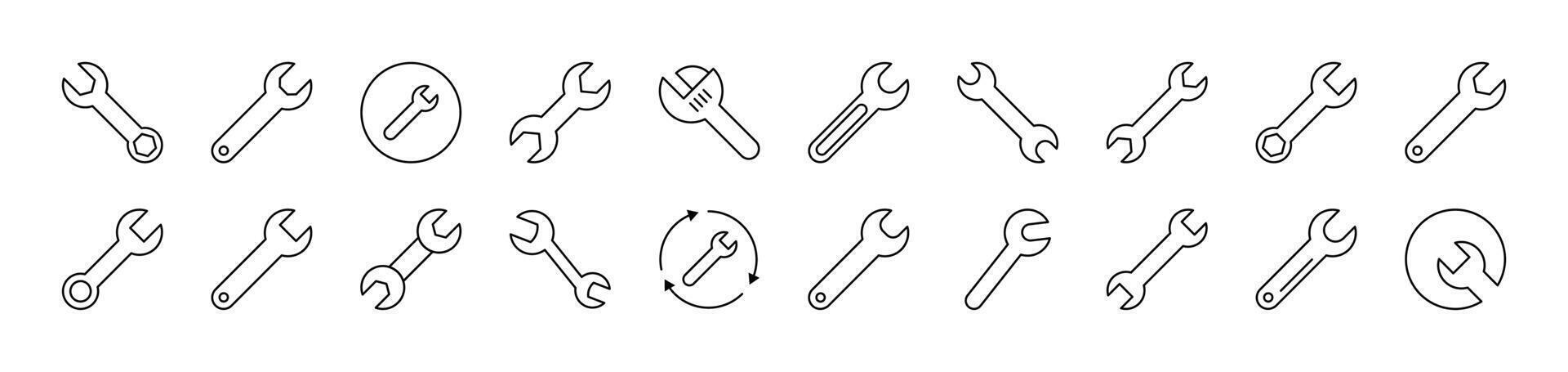 Pack of Line Icons of Wrench. Editable Stroke. Minimalistic Linear Pictogram for Design of Cards, Apps, Banners, Posts Pro Vector