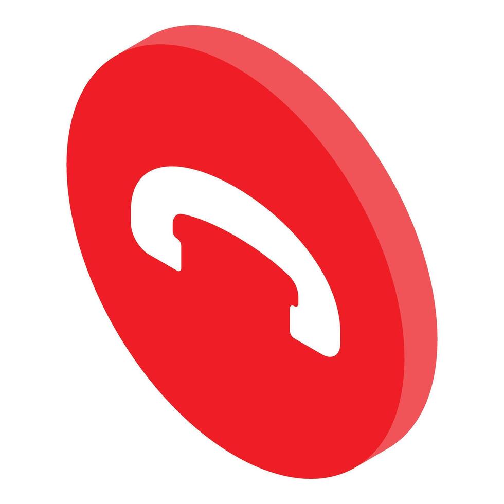 Red round phone button showing receiver hanging up isometrically Pro Vector